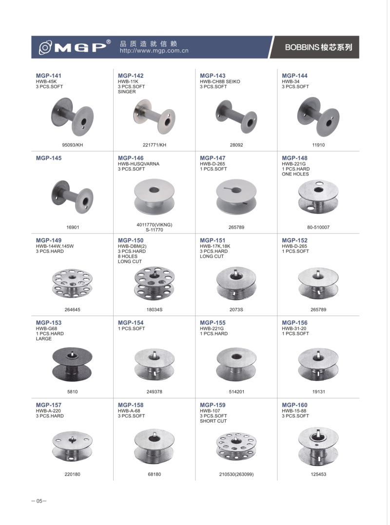 寧波市宏威機械制造有限公司 MGP品牌成立于1990年,總部位于浙江寧波。企業分為浙江寧波、浙江紹興、河北、三大生產基地。全產業鏈自主生產的全產業鏈。是國內較大的梭芯生產基地和縫紉機配件的企業之一。是我國縫配件梭芯、梭殼縫配件出口量較大企業。MGP品牌產品與各大整機公司配套,并銷售80多個地區,深受客戶信賴。